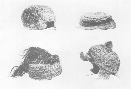 This circle is usually worn round a red cloth cap, rather like a flattened fez, but is occasionally worn round a brown one, and, when work has to be done, even on the uncovered head. In addition, the Igwi carries a circular fan made of untanned cow-hide, usually ornamented with red cloth strips or some similar decoration,and a short thin handle. This is the Azuzu. Finally, a short-handled many-thonged fly-flick is common, and is carried in the hand or over the shoulder. This is the Ijappa. Ivories round ankles or wrists are very usual and are termed respectively ordu uku (ivory [for] foot) and orku uku (ivory [for] hand).