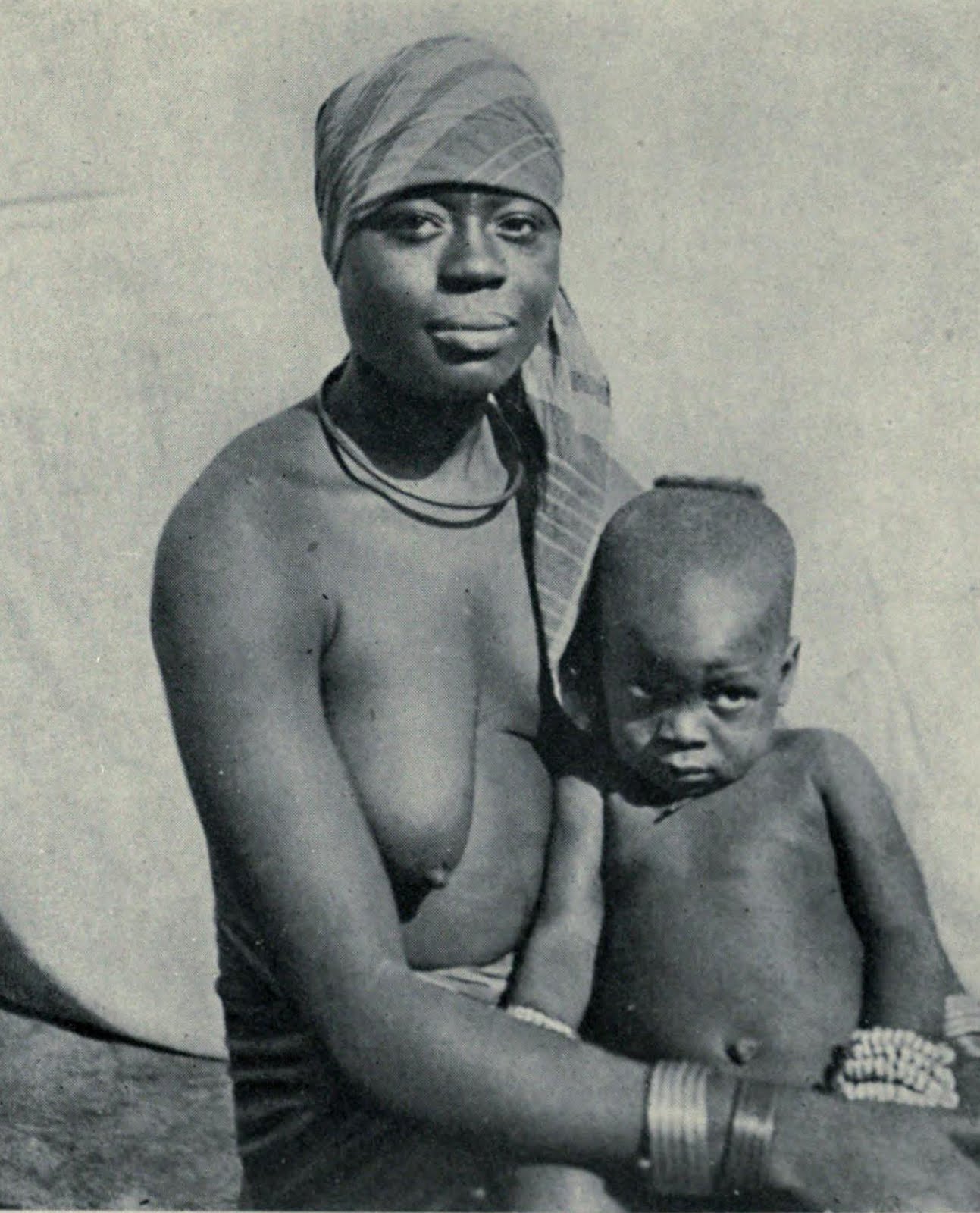 Grades of chiefs.—The first and highest grade is that of Igwi [Igwe]. The distinguishing mark is a circle of broom (termed Aziza, from the palm tree), knotted before and behind, with upturned ends a couple of inches or so in length.