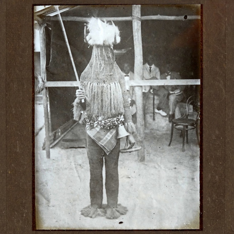 Alụsị with its priest and its ritual iron belled staff, Ösü (Orsu), West Isuama Igbo. Photo by G. I. Jones, 1930s. MAA Cambridge.